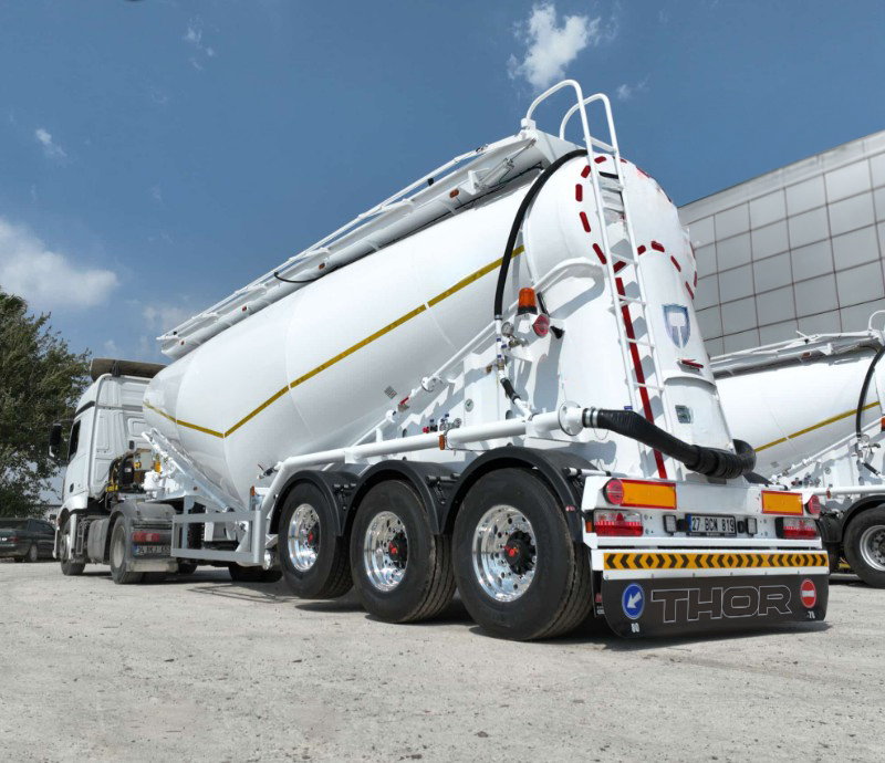 THOR Trailer Cement Bulk Semitrailer series is specially designed for safe and efficient transportation of cement, sand, limestone and other bulk materials. With high-quality steel construction and advanced pneumatic discharge system, it provides trouble-free service for many years. Our production complies with European standards and has international quality certificates.
